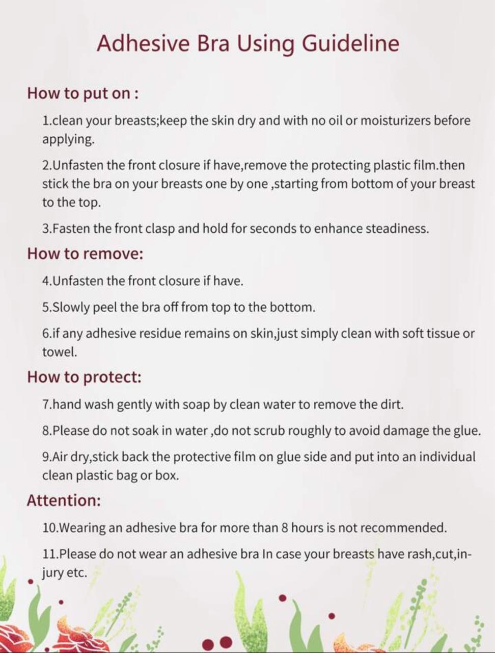 • Crafted from 100% silicone material, this strapless bra features a sticky and skin-friendly silicone adhesive. Its high-strength stickiness ensures your chest remains comfortably positioned without the fear of it slipping off. Easy to wear and remove, its strong adhesive does not cause any discomfort to the skin.